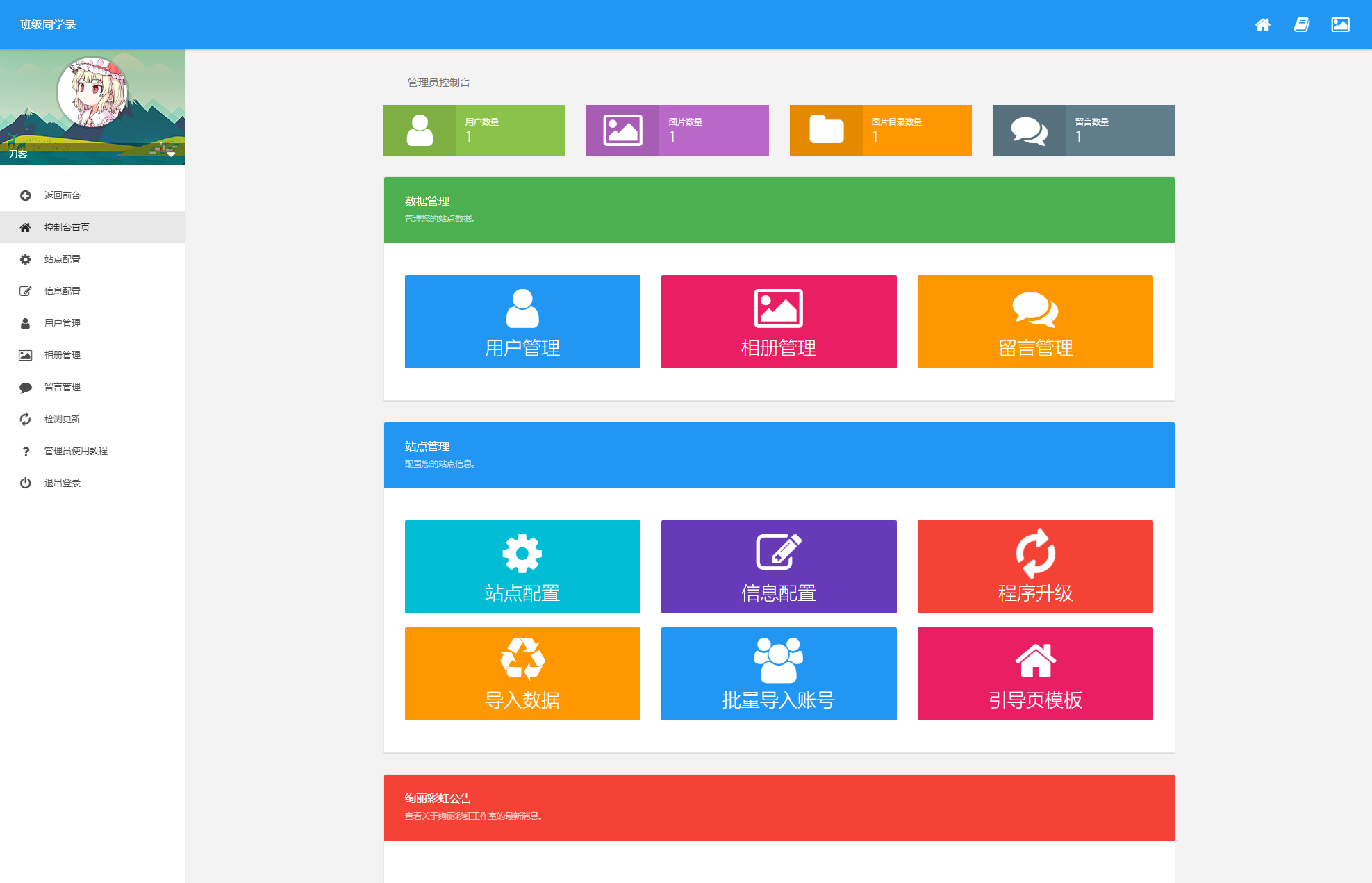 绚丽彩虹同学录是一个开源的电子同学录程序,V1.5 fix版本完全无加密源码,包含个人主页、同学录、相册、留言板等三大功能。个人主页功能可填写个人信息,定制个性化主页;同学录功能可查看全班同学的主页;相册功能可自由上传图片,保存期限设为永久;设计理念是极简化、精致化,让用户更加高效地使用每一个功能,不使部分功能荒废。建议尝试使用此轻便、强大、私密的同学录程序,源码完全无加密。