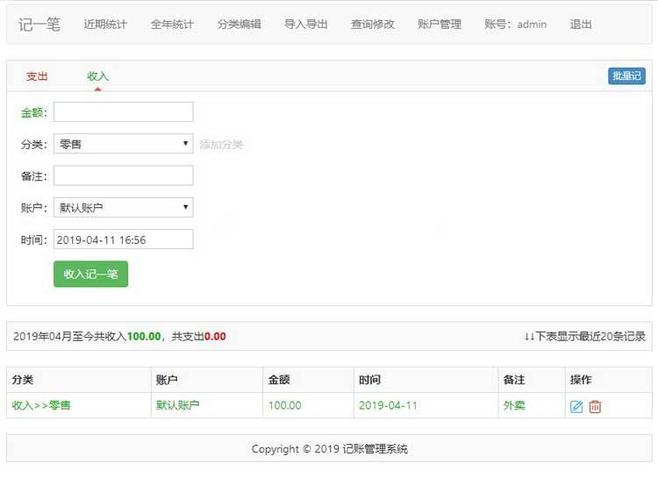 杂货铺/家庭在线记账理财PHP管理系统,后台功能强大,支持数据导入