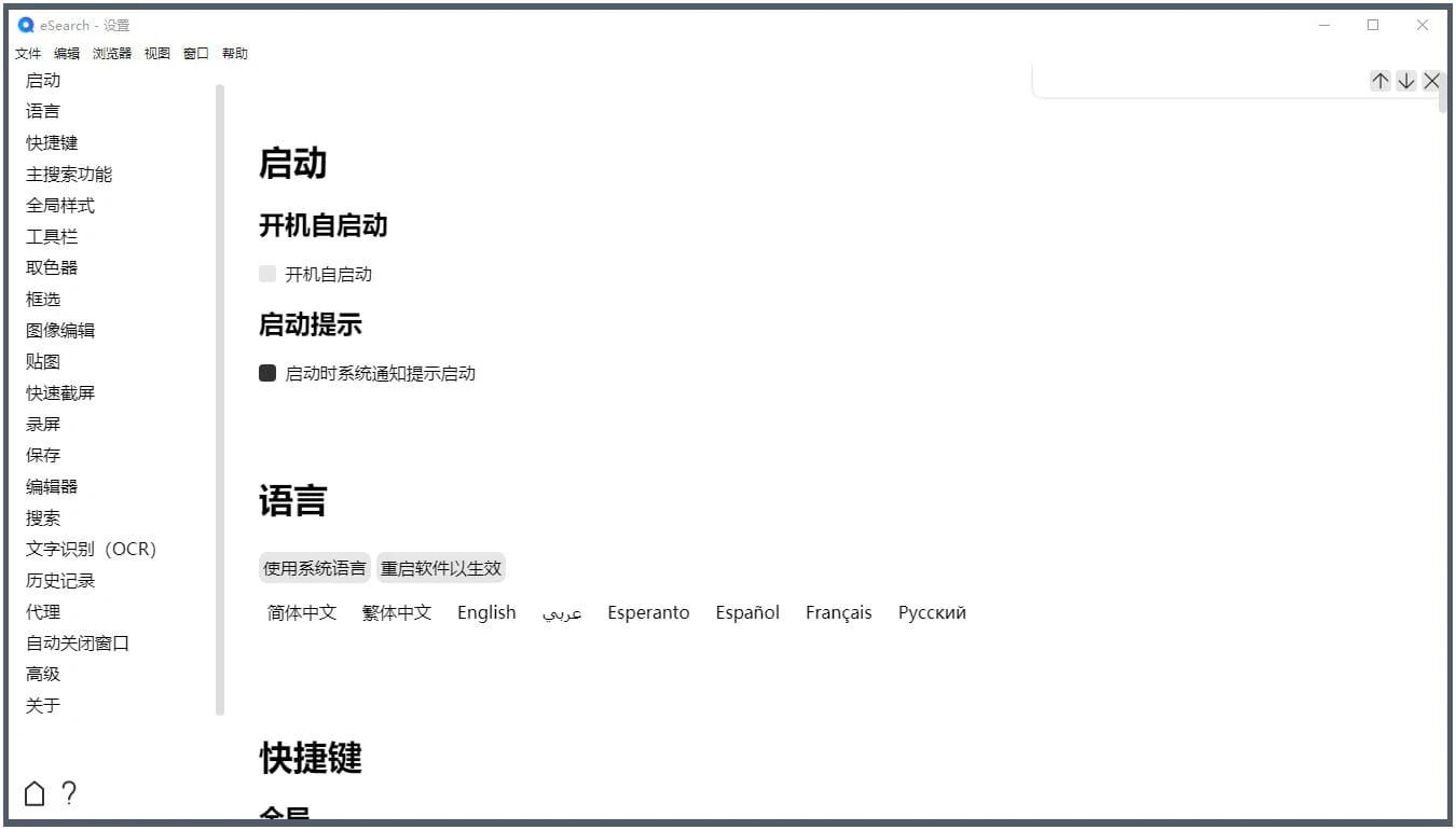 eSearch 识屏 · 搜索是一款开源跨平台的集截屏+录屏+OCR+搜索+翻译+贴图+以图搜图等实用功能于一身超级神器,拥有干净清爽的UI用户界面,操作简单易上手,提供了在线和离线的OCR文字识别、识屏搜索,图像编辑等实用功能,可以满足用户的文本查找、截图屏幕录制等常用需求。