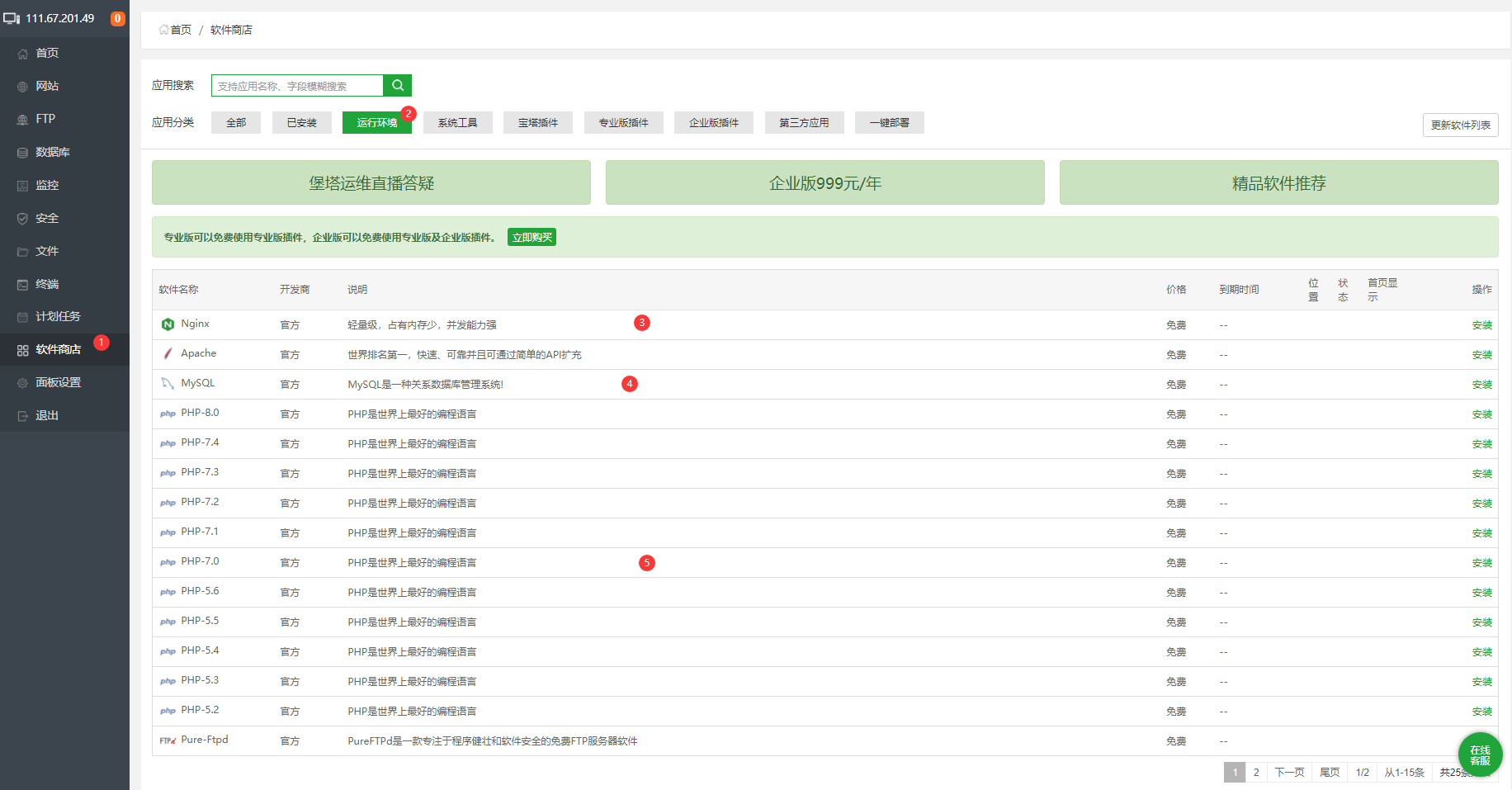 FTP(Pure-Ftpd)版本:1.0(直接安装无版本可选)