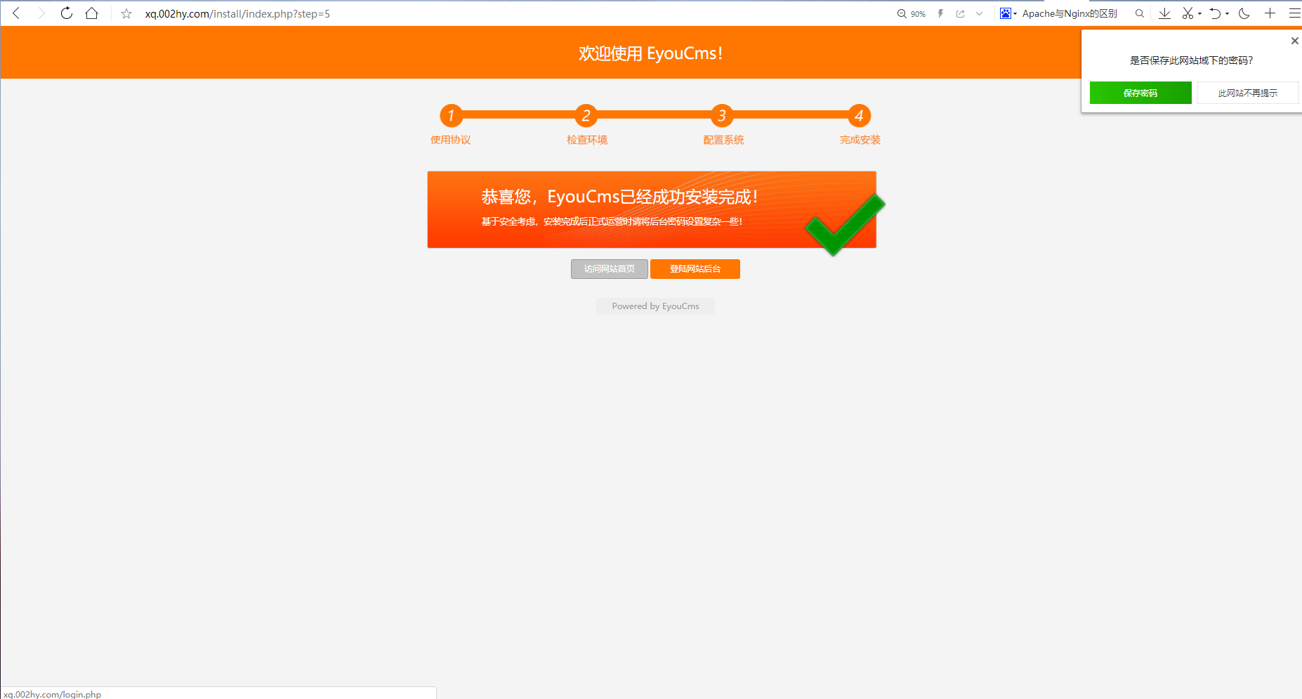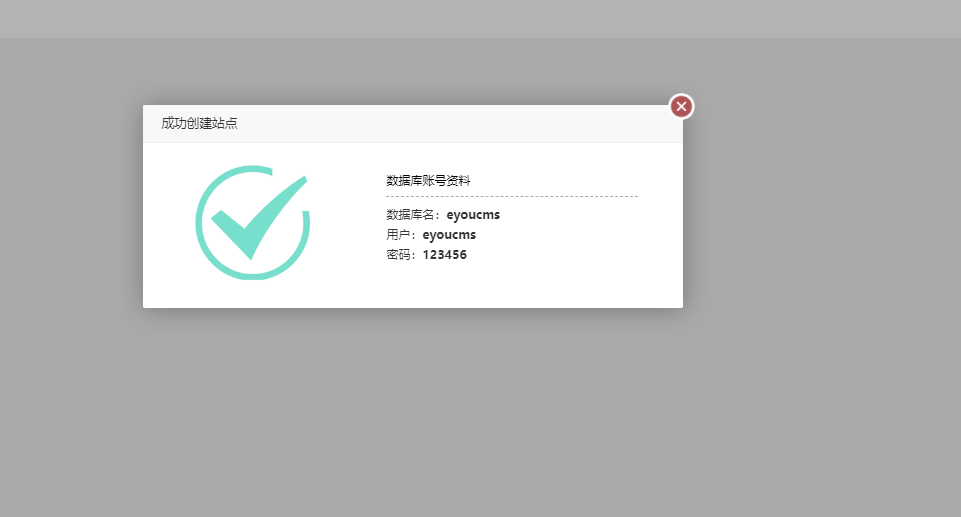 用户名:eyouCMS (刚才创建网站的时候自己设置的)