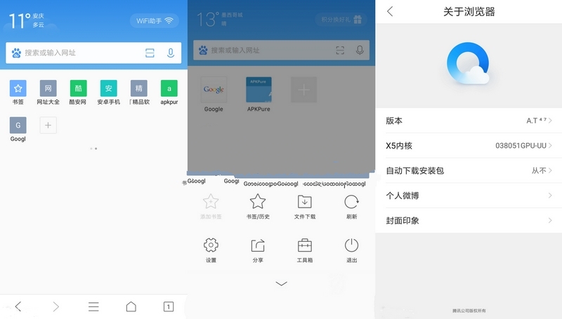 QQ浏览器(包名:com.tencent.mtt)是腾讯公司研发的是一款应用于安卓平台的浏览器,该软件界面清新,操作简单易用,更快捷,更方便,使用业界领先的浏览技术,整个软件占用资源少,体积小,速度快,产生的流量更少,可以让喜欢移动生活的你获得最佳的浏览体验。