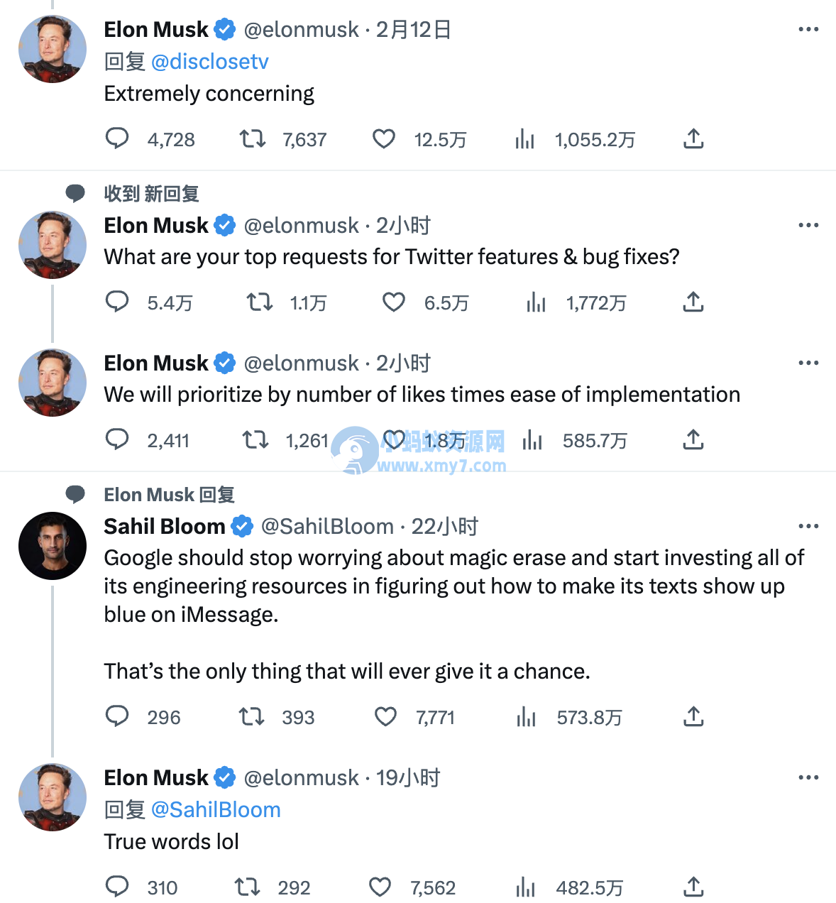北京时间 2 月 14 日消息,当地时间周一,许多用户发现,推特老板埃隆・马斯克 (Elon Musk) 的推文在他们的信息流中疯狂刷屏。当用户打开推特主页时,到处都是马斯克的推文和回复。
