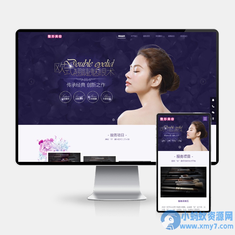 模板名:(H5自适应)pbootcms响应式科技机构企业网站模板 紫色美容整形单位网站源码下载