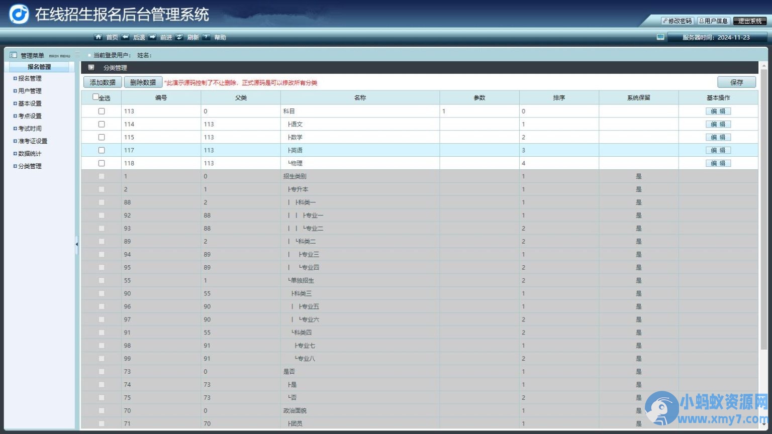 报名学校招生考试报名系统(含支付宝即时到帐接口,需自行配置)后台分类不能删除部分为系统保留等。