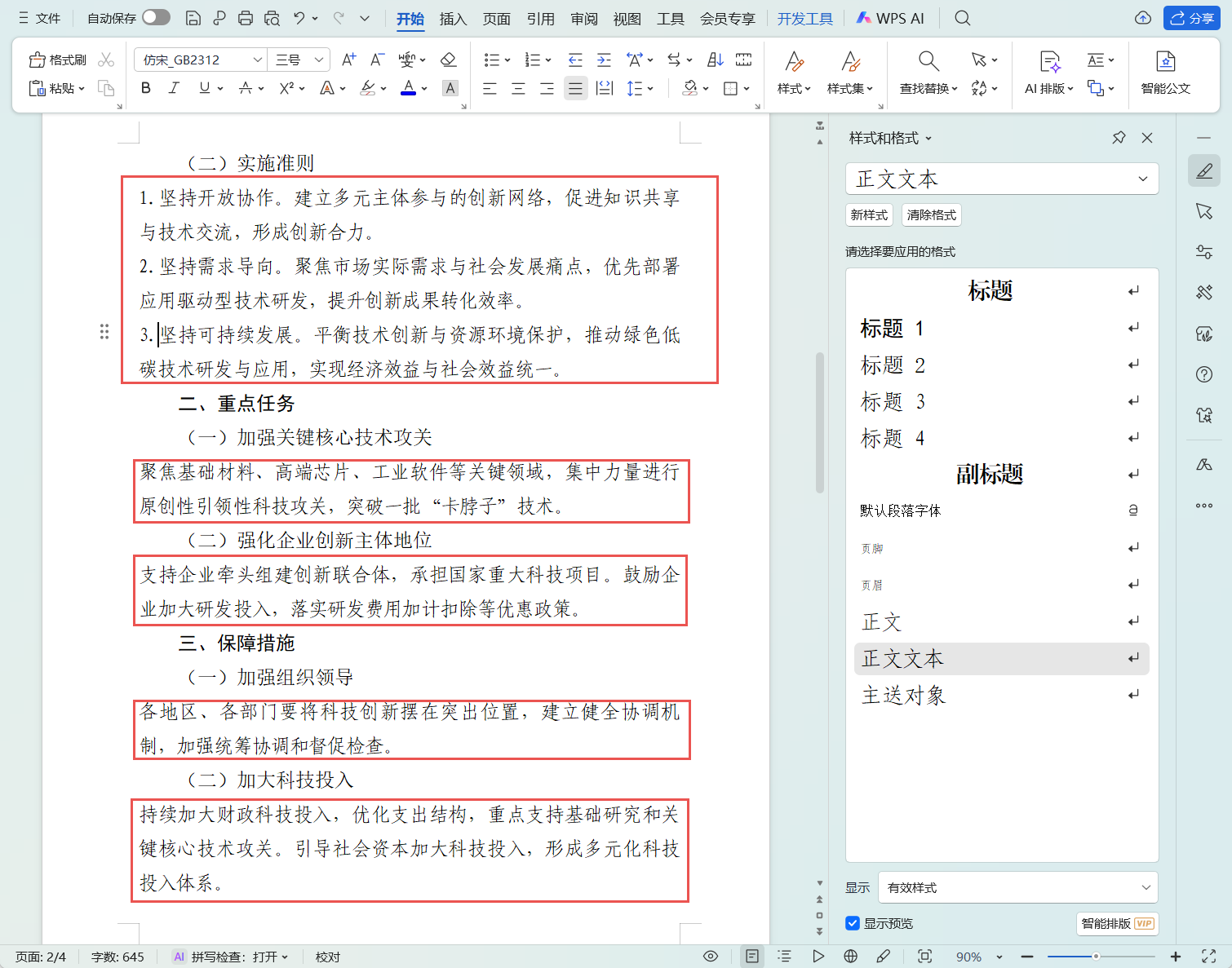 b. 可以看到文档内所有的“标题2”都变成了宋体