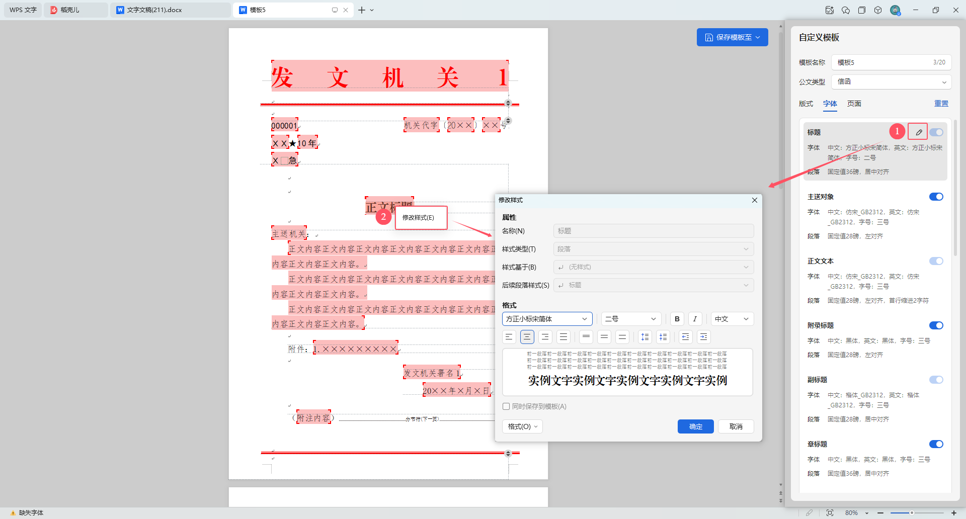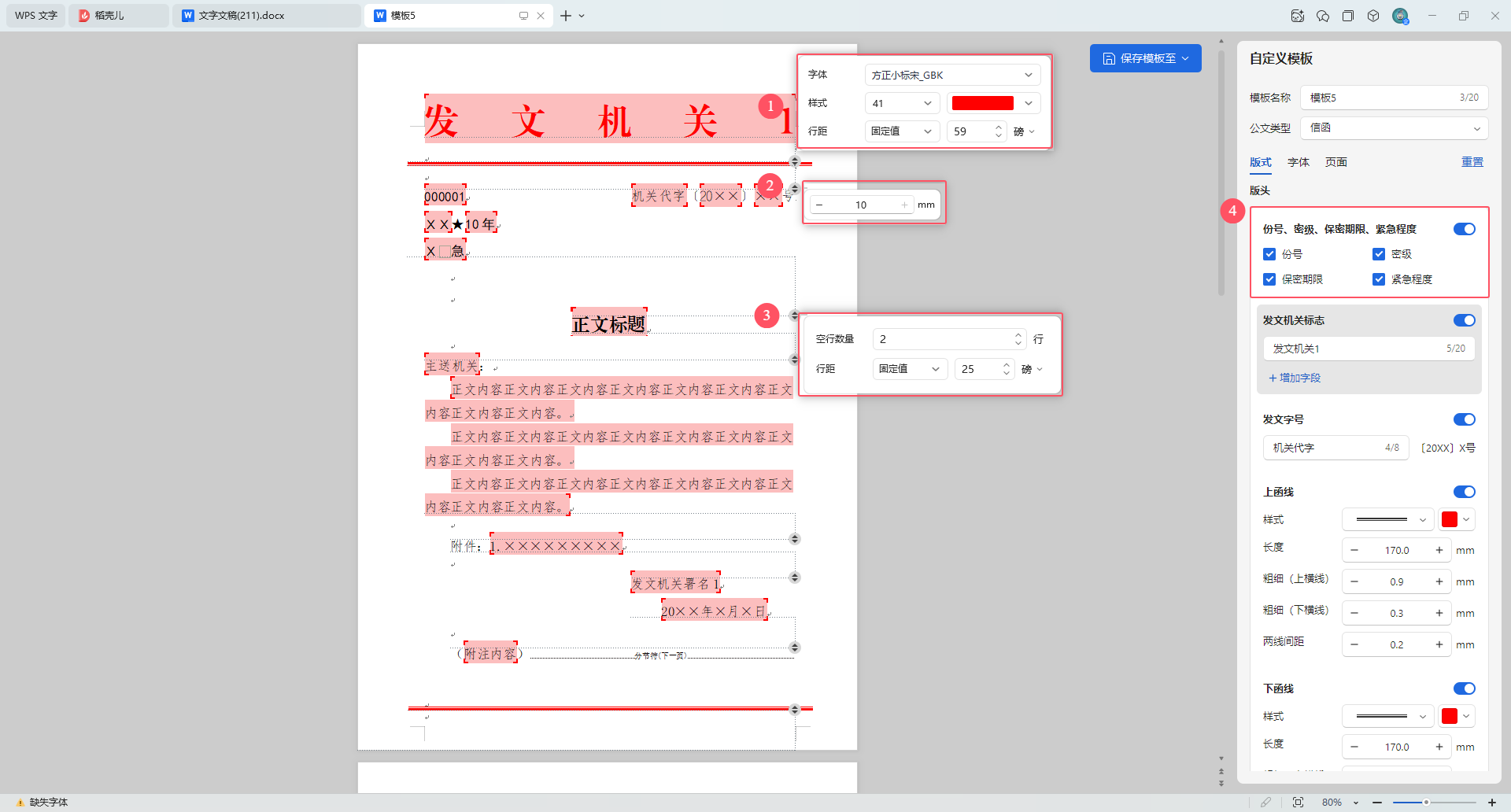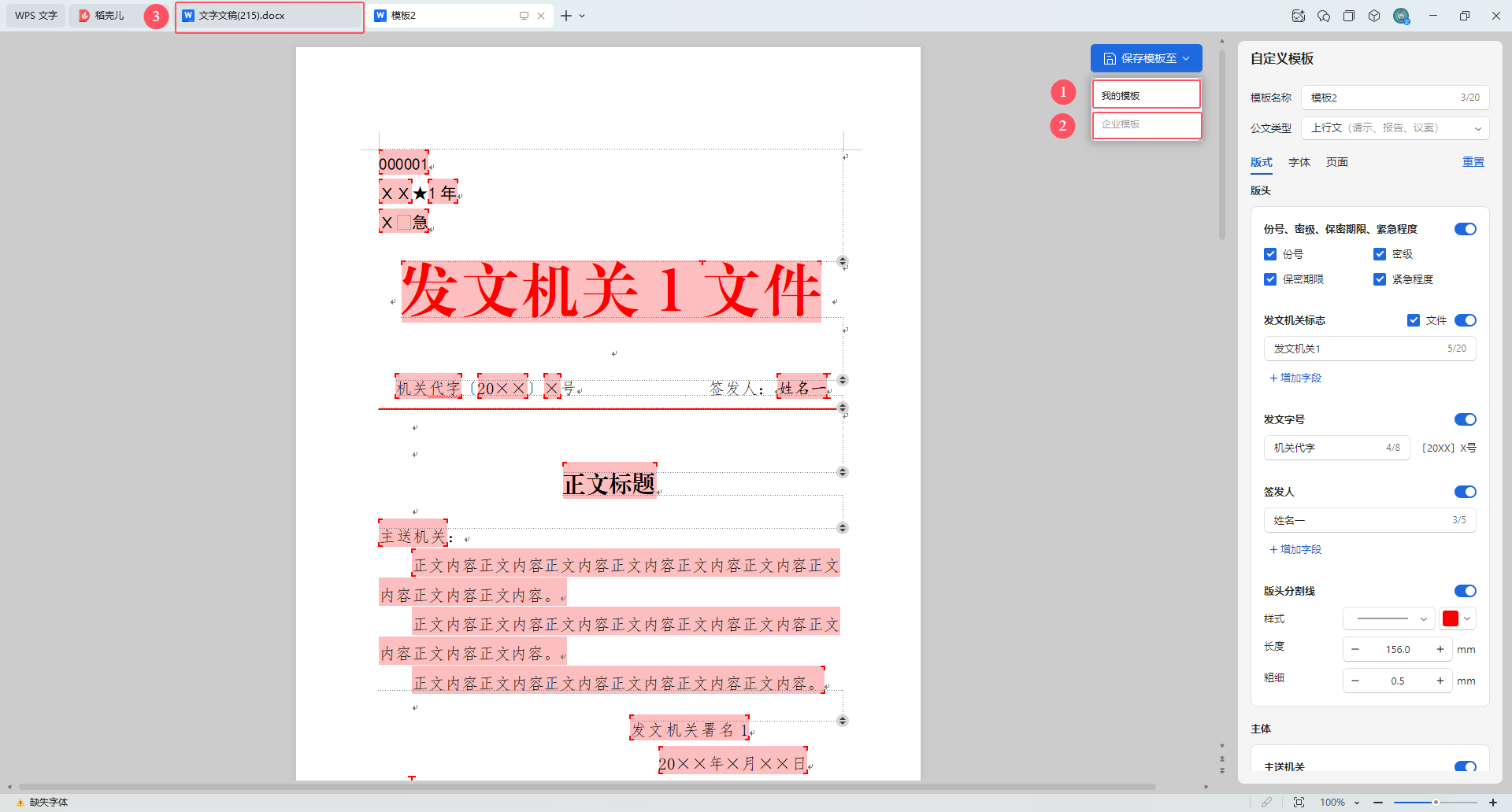 ①对应发文机关样式设置