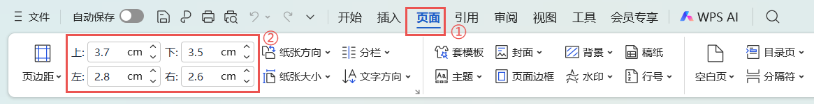 ②进行页边距设置,可以设置当前文档的上/下/左/右边距
