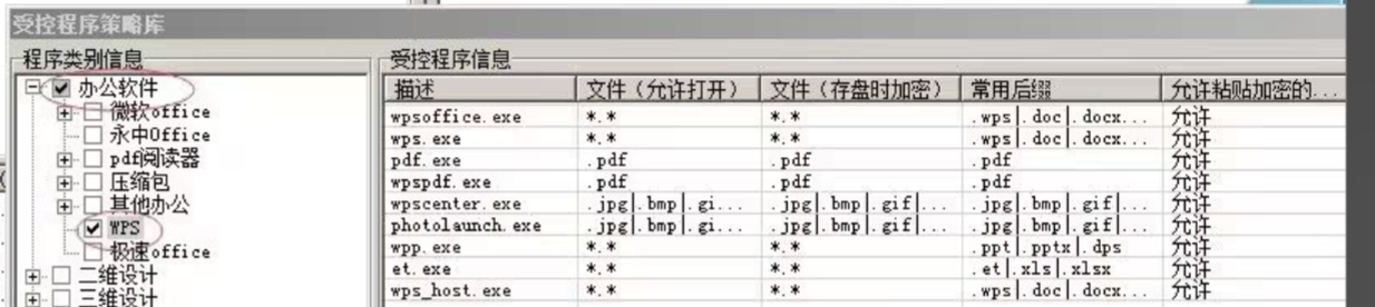 加密软件限制进程示例图:联系管理员取消勾选WPS的进程限制后进行重试