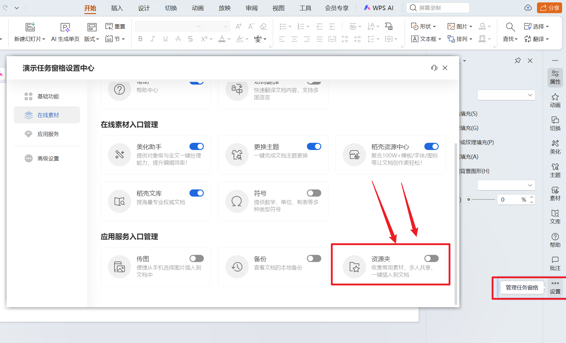 温馨提醒:如您使用的是Windows电脑端,也可尝试【资源夹】功能,开启入口:【管理任务窗格】–>【打开资源夹】即可在任务窗格显示